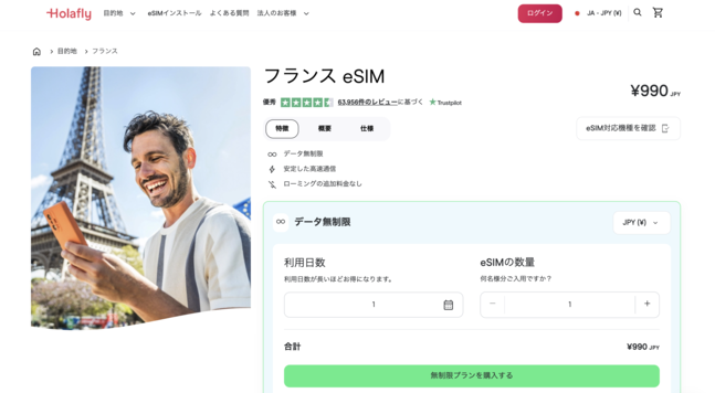 料金面ではもっと安い選択肢もありますが、「設定の手軽さ」「無制限で安心」「旅行者の実績」という3つの要素を兼ね備えたHolaflyは、特に初めてフランスでeSIMを利用する人に最適といえます。